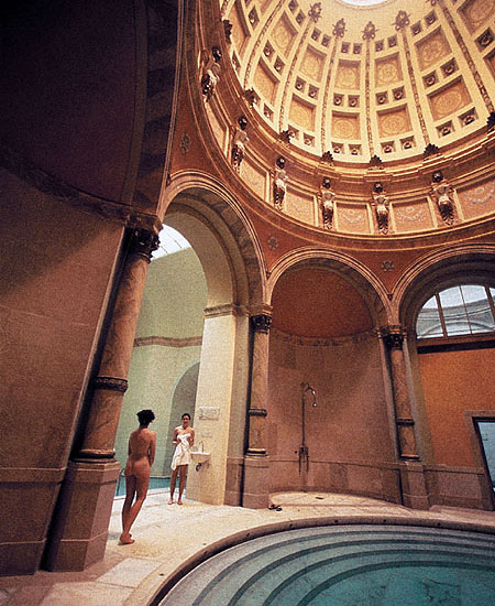 Купальный дворец «Фридрихсбад» построен на месте древнеримских терм. Древнеримский образец воссоздан максимально точно — колонны, арки, купола, фрески, мозаики. Действие римско-ирландских бань основано на сочетании горячего влажного пара и сухого воздуха. Переступив порог «Фридрихсбад», вы будете посвящены в древнейший ритуал SPA, который включает в себя чередование различных видов массажа и контрастные водные процедуры. Врачи-курортологи рекомендуют этот метод для укрепления нервной системы и закаливания.