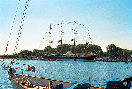 В этом году в Травемюнде с очередным визитом побывал украинский трехмачтовый парусник «Херсонес». Это учебное судно, приписанное к порту Керчь, только что вернулось из ремонта, за время которого навигационное оборудование было заменено более современным, а также перестроены каюты для курсантов и пассажиров, ставшие более комфортабельными. Курсанты Керченского военно-морского училища проходят на нем летнюю трехмесячную практику и довольно часто берут с собой в плавание цивильных пассажиров.