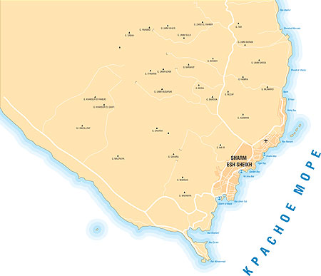 Шарм-аль-Шейх – это сорокакилометровая полоса отелей. Но к востоку от аэропорта они быстро заканчиваются, и до самого Дахаба – пустынный берег, голые красноватые горы, каменистая пустыня, по-арабски «хамада», надутые весенними ветрами барханы. На самом Синае песка мало, и прибрежные барханы – это песок Сахары.
