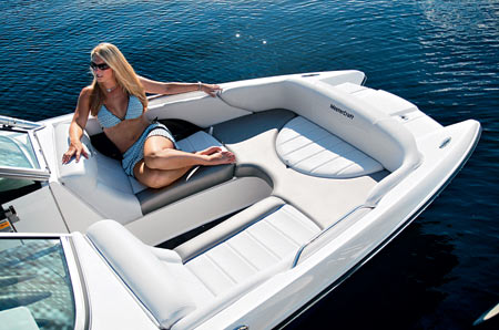 Съемный столик в центре основного кокпита и вращающееся сиденье водителя катера превратят его в идеальное место для коллективного пикника. Два термоизолированных ящика под диванами сохранят напитки, безусловно, безалкогольные, в прохладном состоянии. Под всеми диванами предусмотрены вместительные рундуки, которые ожидают принять на хранение весь богатый арсенал вейкбордиста.