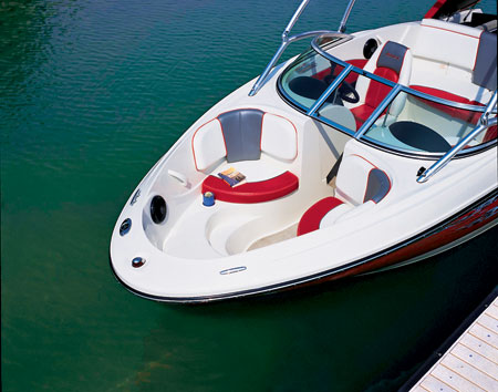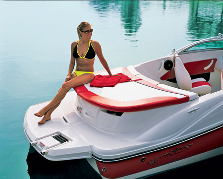Наклоненное ветровое стекло вместе со скошенной вниз кормой придало катеру обтекаемость и гладкость форм. Приятным побочным эффектом стал очень узнаваемый, абсолютно индивидуальный облик — предыдущие модели, по сравнению с 185 Sport, выглядят, согласитесь, слегка угловато. Несмотря на то что 185 Sport официально именуется спортивной лодкой (sport boat), это не означает, что он подойдет только сильным духом спартанцам. Как следует отдохнуть на воде смогут даже те, в чьи планы не входят пируэты на вэйкборде или водных лыжах. На корме выдвижные сиденья легким движением руки преобразуются в просторный лежак — отличное место для загорания и релаксации. В непосредственной близости от лежака расположена стереосистема Clarion® AM/FM/CD-проигрыватель, спрятанная в запираемом отделении для перчаток (по-русски это обычно называется «бардачок»). Специально для эстетов и тех, кому медведь не наступил на ухо, может быть установлена аудиосистема высокого класса Premier с четырьмя колонками и цифровым дистанционным управлением.