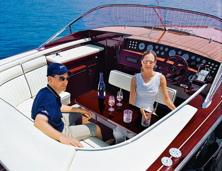 В 2004-м состоялся потрясающий дебют катера Boesch 710 Costa Brava de Luxe, оснащенного инновационным носовым рулем. А уже через год Boesch превосходит себя, выпустив флагманскую лодку верфи — 900 Riviera De Luxe. Это очень стильный, выполненный в стиле ретро представительский катер из красного дерева с двумя мощными двигателями (опции от 300 до 380 л.с.). Среди основных его достоинств — необыкновенно широкий кокпит, выдвижной трансформируемый бимини-топ для защиты от ветра, дождя или солнца, носовая каюта с большой двуспальной кроватью и отдельным, разумеется, гальюном. Кокпит благодаря своей почти трехметровой ширине с легкостью вместит семь человек, включая рулевого. Место последнего — это мультифункциональный двухместный диван, который может разворачиваться на 180 градусов — как раз к складному столу красного дерева. Приборная панель представляет собой настоящее произведение искусства, и описывать ее — дело неблагодарное: это тот самый редчайший случай, когда лучше один раз увидеть. И по возможности купить. Слева от приборной доски — удобный спуск в носовую каюту. Внизу, помимо большой двуспальной кровати, множество полочек и подставок для вещей.