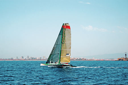 Тримараны, вокруг которых и завязывается вся интрига этой «Формулы-1», — это удивительные по своей конструкции многокорпусные парусные яхты. Эти 60-футовые суда поражают изощренностью своей технической конструкции и при всей своей кажущейся громоздкости обладают удивительной виртуозностью маневров. На открытой воде эти суда, кажущиеся такими необъятными вблизи, напоминают изящных хрупких журавлей, когда совершают маневры и «ложатся» на один из боков так, что противоположная часть яхты оказывается на высоте до 15 метров.