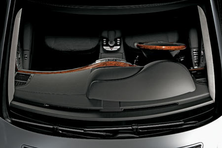Именно поэтому совместно с дизайнерами и инженерами группы компаний IVM-Automotive и Edscha были «прорисованы» и «обсчитаны» все возможные версии изменения облика нового S-класса. Кстати, задача оказалась не из простых, хотя бы потому, что кузов новой модели S-класса это «сплав», в буквальном смысле это слова, стали и алюминия. Многие детали кузова, как, например, капот, двери, крылья, передние модули, задние панели и крышка багажника, изготовлены из алюминия. Кроме того, силуэт кузова имеет более стремительные линии, ниспадающие от кормы к носу, по сравнению с предыдущим 220-м. А чего стоят «набухшие» арки колес и монументальный майбаховский багажник.