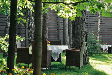К большой террасе, утопающей в цветах, и к уютному интерьеру с мягкими диванами и креслами теперь добавилась открытая летняя площадка, где можно устроиться за столиком прямо на газоне под соснами и березками или в большом шатре. Здесь же неподалеку открылась детская площадка и маленький зоопарк домашних животных, с которыми можно поиграть. А в плохую погоду дети могут заняться своими делами в детской комнате на третьем этаже.