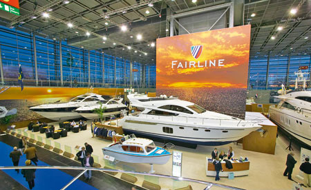 У Fairline большая победа. В первый день Boot Dusseldorf Targa 38 была объявлена победителем в номинации «Европейская лодка года» среди моторных яхт длиной от 30 до 40 футов. Помимо самой победительницы на стенде можно было увидеть Targa 52, Phantom 40 и 48, а также подвергшийся недавно рестайлингу Squadron 74. Все жаждали увидеть новую Targa 44, однако премьера снова отложена, теперь уже до бот-шоу в Саутгемптоне. Впрочем, всем интересующимся наконец-то сообщили цену этой модели — 325 тысяч фунтов. Ferretti Group представила новый Mochi Craft Dolphin 44. Не заметить его необычный корпус лимонного цвета среди привычной сине-белой гаммы было невозможно. В этом номере мы посвятили ему целую статью — так что листайте журнал в поисках подробностей. Из других брендов Ferretti Group в Дюссельдорфе можно было увидеть презентованный осенью Pershing 50 Shaftliner, элегантную Ferretti 630 и три уже знаменитые лодки Riva: Aquariva, Rivarama и Rivale. Итальянская верфь Azimut тоже с новинкой. Хорошо знакомый Azimut 62 появился в новой версии evolution, изменившись как снаружи, так и изнутри. О нем также большой материал в этом номере — читайте.