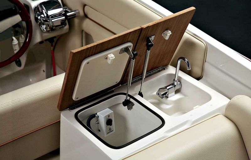 Отдых на Launch 28 можно разнообразить водными лыжами и вейкбордом — скоростные возможности лодки это позволяют. Можно быстро доставить большую компанию в какую-нибудь отдаленную бухту на пикник или к ресторану на воде. Еще одно важное назначение Launch 28 — работа в качестве вместительного тендера для большой яхты. Тендер нужен для красивой доставки пассажиров с борта яхты на берег и обратно, ночевать в нем нет необходимости, так что каюта — вещь скорее лишняя, чем полезная. В этом и заключается принципиальное отличие линеек Launch и Corsair.