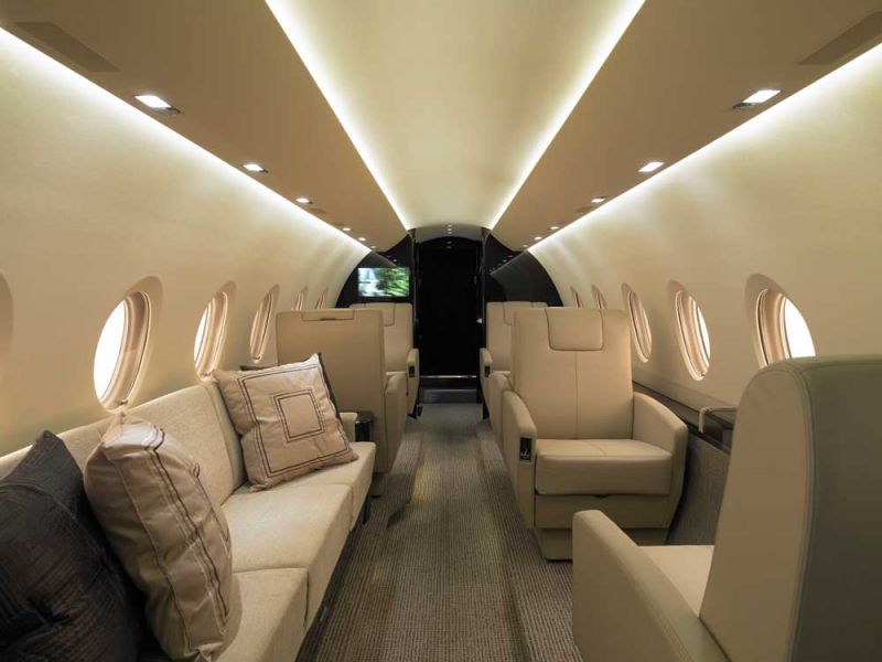 Перейдем в салон. При практически одинаковой ширине длина салона Challenger 300 заметно больше. А вот по объему выигрывает G250 — за счет того, что потолок салона у него поднят выше.