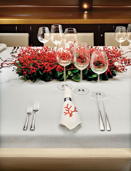 Благодаря высокому надводному борту практически все оборудование, а также разнообразные отсеки для хранения удалось «утопить» под поверхностью палубы. Там спрятаны два тендера, кран для спуска их на воду, лебедки, утки, помещения для хранения парусов. А отделанный тиком люк в носовой части палубы скрывает еще и джакузи.