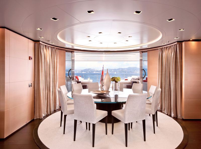 В частности, сейчас дорабатываются две яхты SD122. Одна из них для турецкого клиента. Ведутся работы над двумя яхтами SD110. Эта модель с корпусом длиной 33,65 м предназначена для тех, кому уже тесноваты 80- и 90-футовые лодки, для тех, кто готов сделать шаг вперед. Здесь же работает подразделение, занимающееся интерьерами суперъяхт. Шоу-рум с материалами, которые могут быть использованы в отделке, похож на огромную переговорную, только шкафы от пола до потолка — вместо окон такого же размера. И все с образцами материалов, лакировки дерева, обивки, тканей, с каталогами проверенных производителей. Материалы по желанию заказчика могут быть использованы любые — от любой фабрики, из любой страны. То же с мебелью. Клиенты приезжают и прилетают сюда, бывает, не один и не два раза, а пять-шесть. И причем чаще всего сами, без представителей. Садятся за длинный стол переговоров, чтобы со всем определиться. Напротив шоу-рума — офис меломана Сандро Кявелла. С образцами металлов и дерева под мышкой он постоянно в движении и общении с теми, кто прилетает сюда на вертолете, чтобы выбрать ручки для дверец и ткань для обивки диванов.