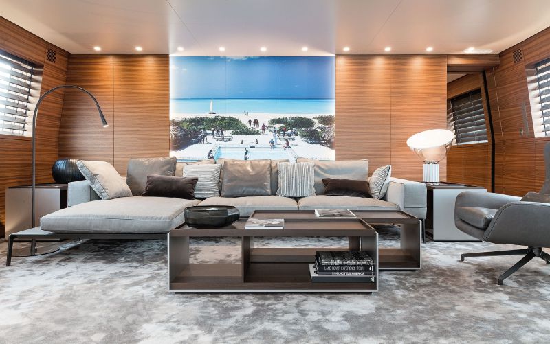 Помимо панорамного салона с кинотеатром главная палуба примечательна так называемым зимним садом: застекленным кондиционируемым пространством с обеденным столом на 20 персон. В зависимости от погоды он позволяет устраивать обеды как на открытом воздухе, так и под защитой от ветра или дождя. При этом вид, открывающийся отсюда, в любом случае будет одинаково хорош. Ближе к корме находится просторная лаундж-зона с диванами на возвышении и интегрированной аудиосистемой мощностью 70 000 ватт.