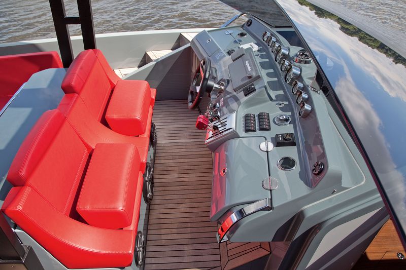 Чтобы вы понимали, в базовом варианте Demon c 400-сильными дизелями дает 38 узлов, а с 550-сильными бензиновыми моторами – 45. Но владельцу и этого недостаточно, он уверен, что лодка способна на большее. «Мы с механиками Frauscher и «Морскими Инженерами» Burevestnik Group собираемся доработать глубину погружения колонок для ускорения выхода на глиссер, а также заменить транцевые плиты на интерцепторы и поиграться с винтами для увеличения скорости, – говорит он. – На данный момент лодка выдает 104 км/ч с полной загрузкой. Полупустая идет со скоростью 124 км/ч».