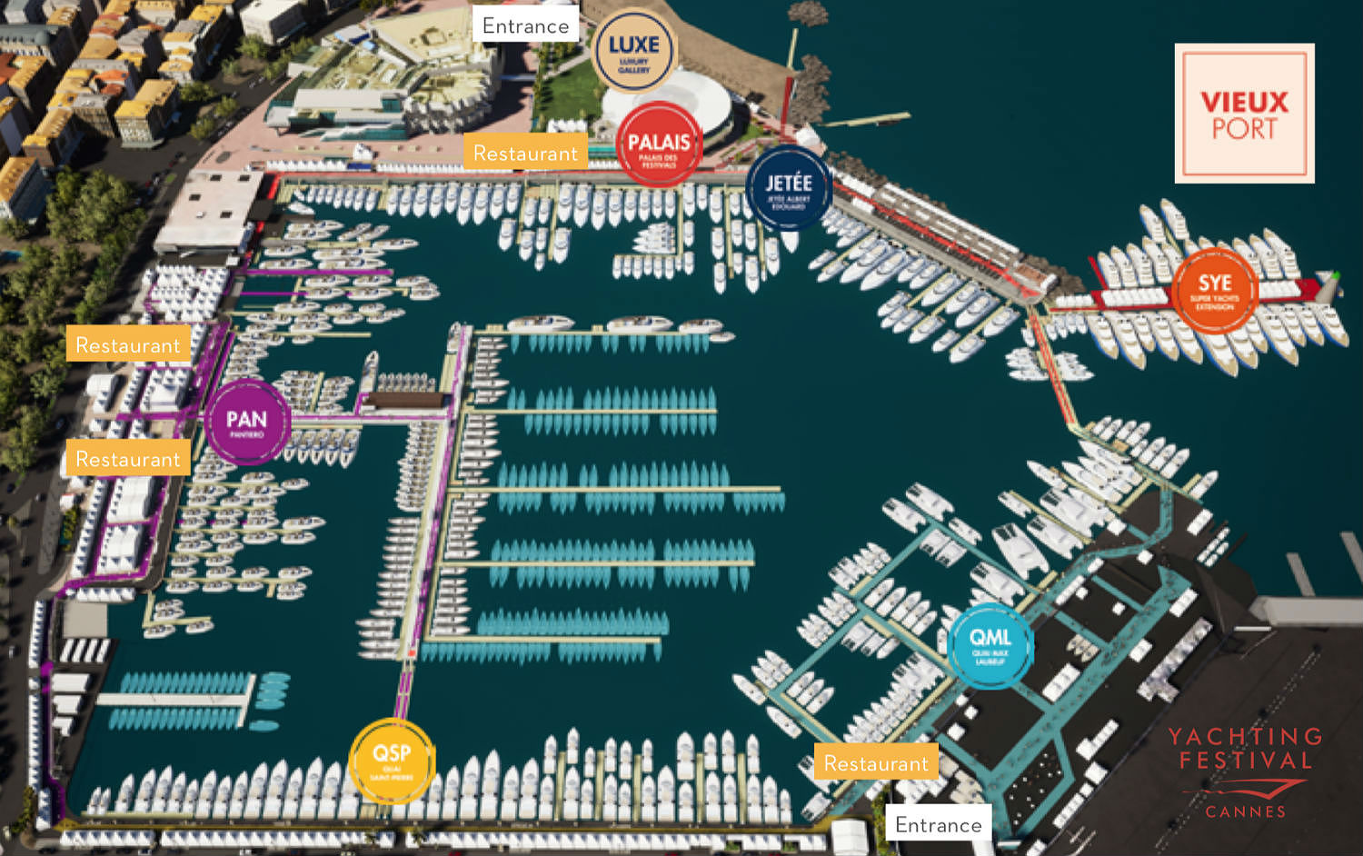 На Каннский яхтенный фестиваль (Cannes Yachting Festival) на момент выхода новости заявлены 542 участника, 638 лодок, из них 122 мировые премьеры. Крупнейшее европейское яхтенное событие распределено на двух основных площадках: в Старом порту Канн, на запад от знаменитой набережной Круазетт, рядом с Дворцом фестивалей, и в Порту Пьер Канто. Народу обычно собирается очень много, больше 50 тысяч человек, поэтому важно заранее понимать, что и где смотреть и как организовать свою поездку.
