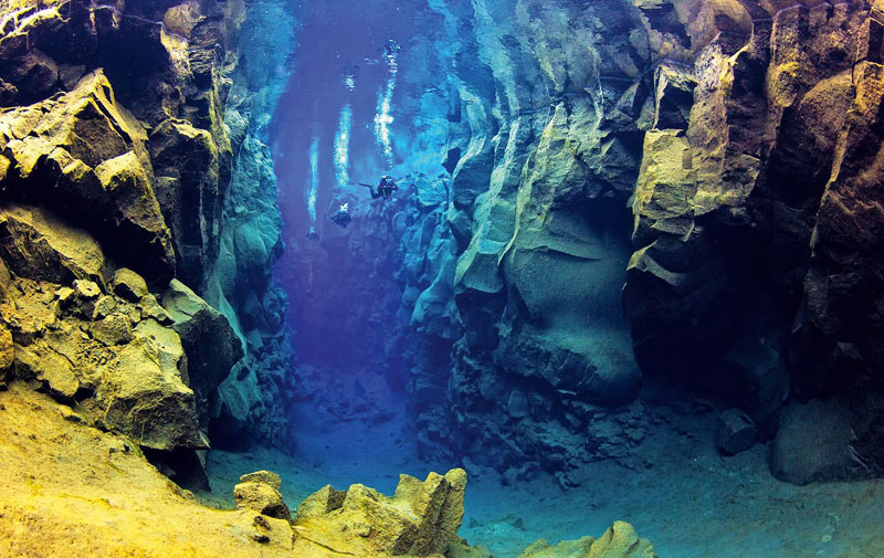 Рифт – глубокая впадина в земной коре, обычно образующаяся в местах смыкания литосферных плит. Одна из самых известных таких подводных впадин – рифт Сильфра в Исландии, в озере Тингвадлаватн на территории национального парка Тингведлир. Невероятные пейзажи, раскрашенные ярко-розовыми, фиолетовыми и изумрудными красками, останутся в вашей памяти и в вашем инстаграме надолго. Вода в рифте абсолютно прозрачная (видимость более 100 м), эффект акварели вокруг – тоже абсолютный. А в самых узких местах можно одной рукой дотронуться до Евразии, а другой – до Америки, как до стен домов на средневековой европейской улочке… Только улочка, на которой вы находитесь, образовалась миллиарды лет назад, и ее стены с каждым годом отодвигаются друг от друга. Ни с чем не сравнимые ощущения.