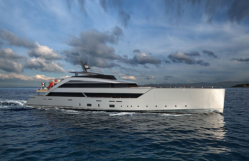 Итальянский дизайнер Лука Валлебона представил концепт мегаяхты под названием Gravity. В ее экстерьере угадывается некоторое сходство с 42-метровой Serenity, которая была построена на верфи Mondomarine и, кстати, получила World Superyachts Award в 2016 году: вертикальный нос, чистые длинные линии и корпус цвета «металлик». Но Gravity намного крупнее (61,5 м в длину, 11,2 м в ширину), и автор признается, что упор сделал на функциональность, стремясь создать пространство максимально удобным. Отсюда асимметричная форма верхней палубы, нетривиальная планировка пляжного клуба в корме, вынесенный на бак треугольный бассейн. На борту семь гостевых кают, из которых три имеют vip-конфигурацию, а «мастер» описывается как «ультраприватные» апартаменты (своя палуба, свой бассейн). Интерьер предлагается в стиле барокко. О технических данных сведений пока нет.