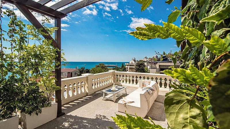 Отель «Крымский бриз» – настоящая Мекка для любителей уединенного отдыха. Гости живут на виллах в средиземноморском стиле с собственным бассейном, баром, личным дворецким. Территория настолько огромная, что передвигаться нужно на бесшумных электрокарах, и складывается ощущение, что вы – единственный гость в резиденции. На 20 гектарах территории соседствуют 250 видов редких растений, собственный сад плодовых деревьев, сосновый лес и живописная пляжная полоса. «Крымский бриз» – неоднократный победитель в номинации «Лучший эко-отель» России. При проектировании резиденции учитывался европейский опыт не только по охране окружающей среды, но и по экологии комфорта. Отель построен исключительно из натуральных материалов, с применением экологически чистых технологий. Всего на территории – 10 уединенных вилл, спускающихся каскадом к морю. Первозданную тишину нарушают разве что плеск волны, шелест листвы, пение птиц. Любители активного отдыха оценят авторские эко-экскурсии, вертолетные туры над побережьем и прогулки на яхте.