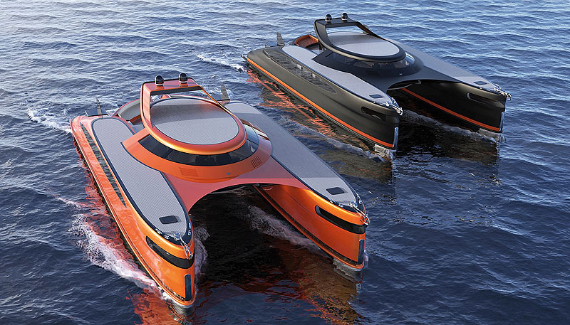 Еще одно чудное (ударение ставьте, как считаете нужным) создание студии Lazzarini Design – катамаран-амфибия Pagurus. Яхты, способные передвигаться и по воде, и по суше, уже давно не новость, множество их разновидностей присутствует на рынке. Однако судно длиной 25 м, да еще и многокорпусник ранее не делал никто! Дизайнеры из команды Пьерпаоло Лаццарини даже придумали для него термин «крабмаран», объединив слова «краб» и «катамаран» (между прочим, Pagurus в переводе с латыни означает «краб»). В море пара 890-сильных дизелей и электродвигатели, подзаряжающиеся от солнечных батарей, разгоняют стальную яхту до 24 узлов. Два винта соединены трансмиссией с генератором, также вырабатывающим энергию для зарядки аккумуляторных батарей на ходу. На берегу в дело вступают 6,4-метровые шнекороторные механизмы, установленные под днищами обоих корпусов. Pagurus способен двигаться по песку, мягкой почве и даже по снегу с максимальной скоростью 35 км/ч, главное, чтобы уклон был пологим. На борту оборудованы каюты для восьми пассажиров и четырех членов экипажа, салон, камбуз и грузовой отсек с лифтом. Этот лифт представляет собой платформу на четырех лебедках, позволяет не только загружать и выгружать крупногабаритные предметы (например, автомобиль-внедорожник), но и использоваться как обеденная зона.