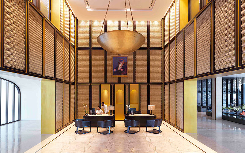 Ландшафт Zulal Wellness Resort органично вписывается в бескрайнюю огибающую его пустыню благодаря пастельным успокаивающим оттенкам в интерьере и использованию природных материалов в строительстве.