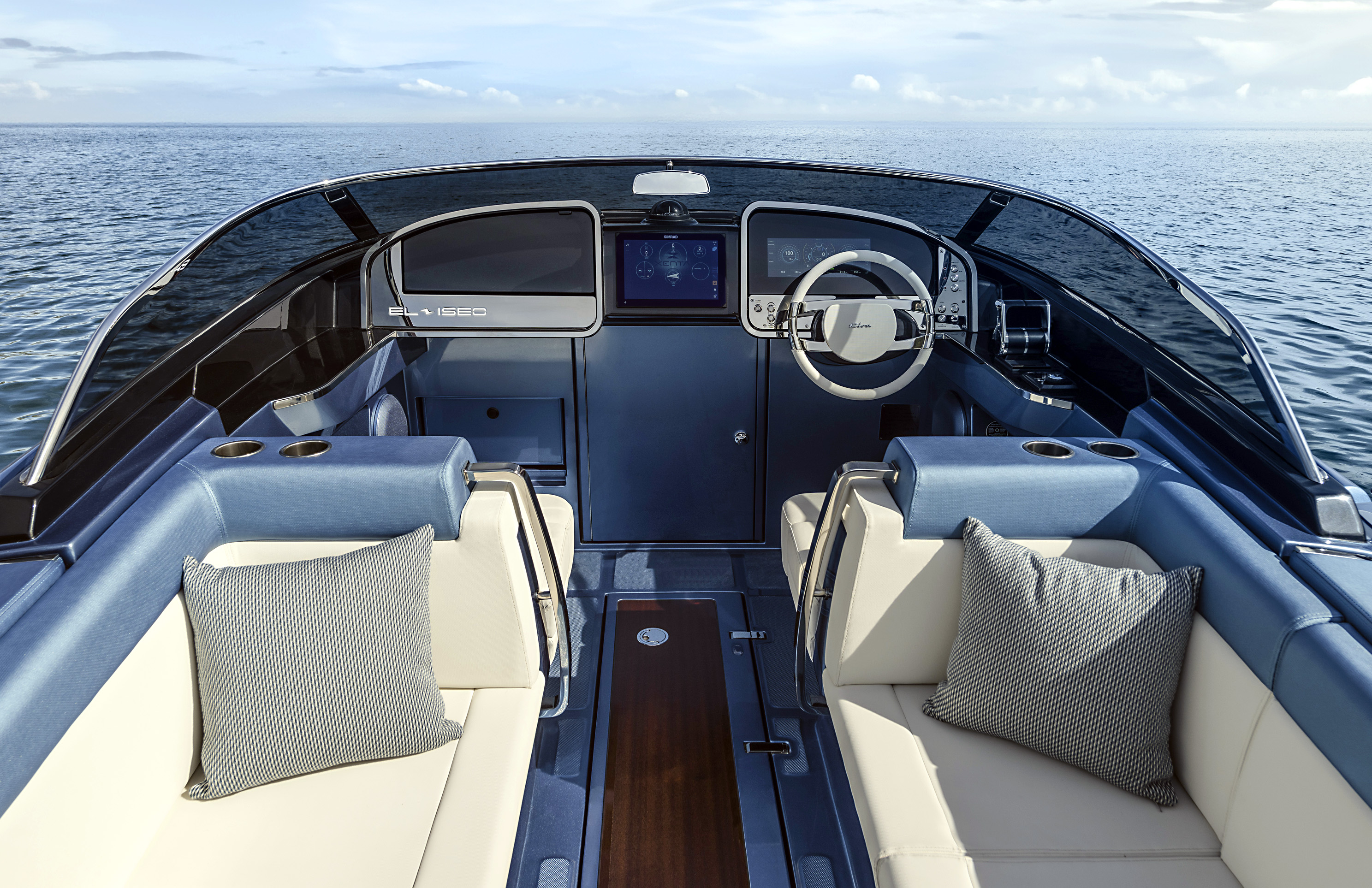 Штурвал катера и приборная панель переосмыслены. Для классического дизайна кокпита их ультрасовременный вид является контрапунктом. На картплоттер Simrad диагональю 9 или 12 дюймов и 12-дюймовый экран Böning выводится информация от бортовых систем, в том числе данные о режиме вождения и об уровне заряда батарей. За разработку системы рулевого управления и ее интеграцию с другими бортовыми системами отвечала компания Xenta.