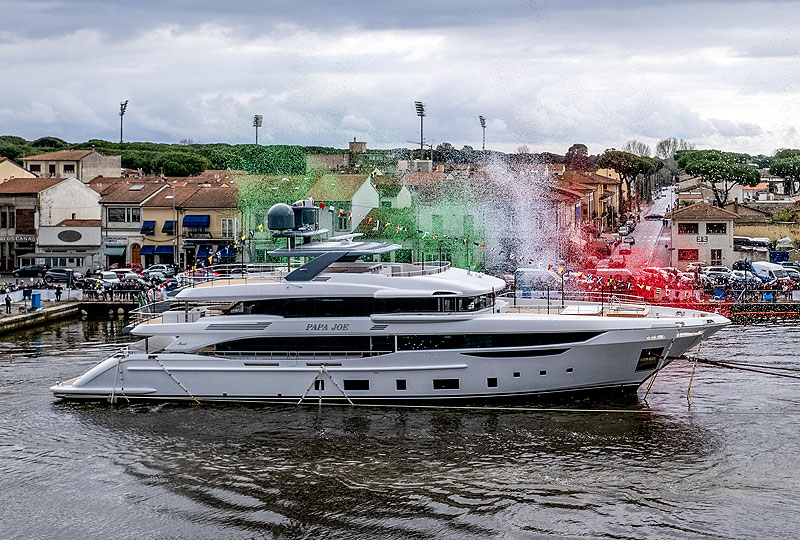 Выражение «сойти со стапелей» сегодня зачастую употребляют фигурально. Большинство яхт спускают на воду при помощи специальных лифтовых механизмов. Однако на верфи в Виареджо в рабочем состоянии находится 56-метровый наклонный стапель, по которому многие годы сходили суперъяхты Benetti. 16 марта в присутствии мэра города и руководства верфи таким же образом был торжественно спущен седьмой корпус популярной модели Diamond 44M — Papa Joe.