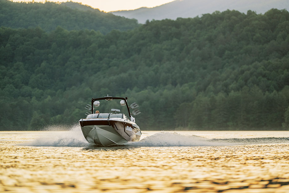 Катер оборудован водным плугом Power Wedge III с семью углами настройки. С его помощью можно получить волну нужной длины и высоты. Еще одна технология — Surf Gate Fusion. Лопасти адаптированы под корпус линии M и позволяют за две секунды сформировать правую или левую волну без дополнительных настроек, пересадки пассажиров и перелива балласта. Разворот упрощает подруливающее устройство Stern Turn. Оно на треть сокращает время подбора упавшего райдера.