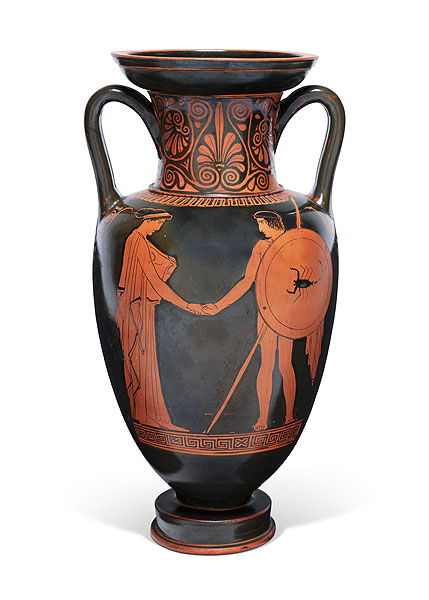 Кому хочется не один шлем, а комплект тяжелого вооружения греческого воина, так называемую паноплию, есть три лота по одной и той же цене. Шлем, панцирь и пара поножей, датируемых VII–IV вв. до н. э. станут вашими за 120–180 тыс. долл.
