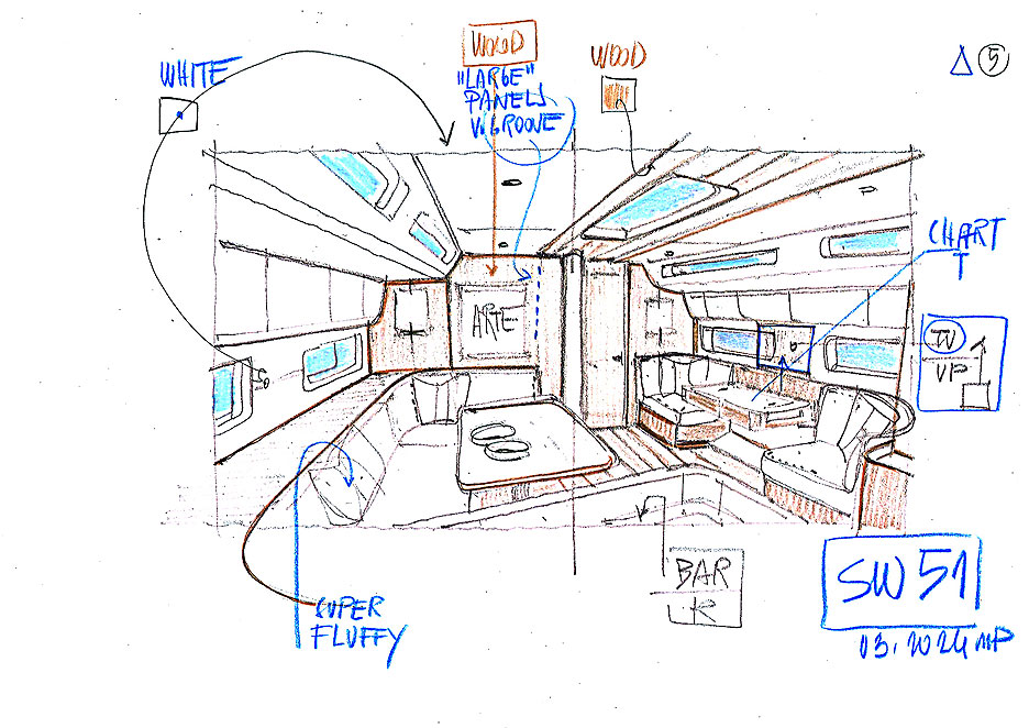 Рубка на Swan 51 довольно длинная, но зато низкая, при желании ее можно обшить тиком.