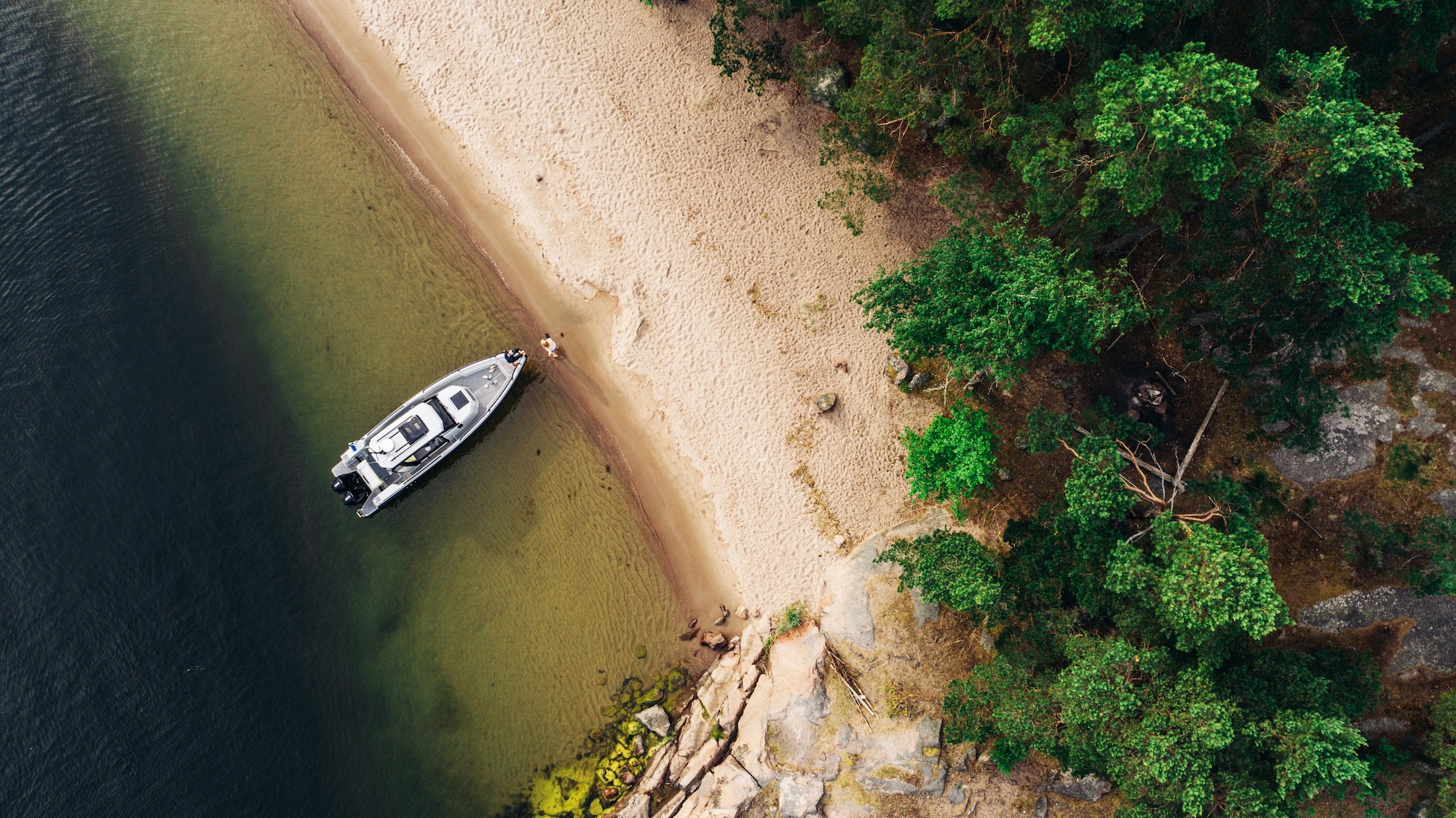 Палуба покрыта практичным нескользящим синтетическим материалом, с которого легко удаляются загрязнения. Толстые крепкие релинги имеют матовое покрытие в отличие от блестящих релингов из нержавейки на большинстве обычных яхт и катеров — благодаря этому они не требуют никакого особого ухода. Вообще внешний дизайн судна подчеркнуто функционален и полон отсылок к автомобилям-вездеходам для серьезного бездорожья.
